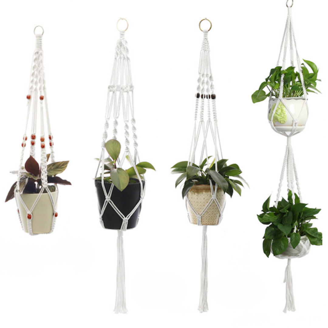Installation is simple. Just secure a ceiling hook or wall hook, hang the loop, and place your potted plant inside.